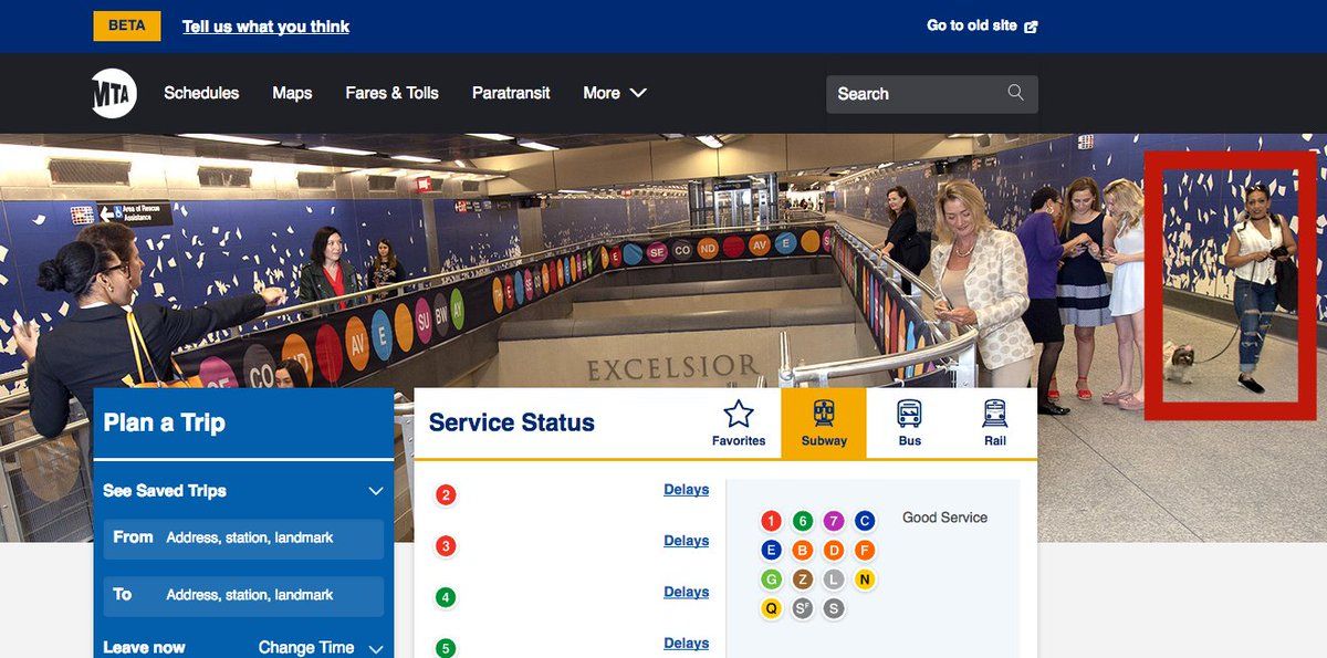 It looks like they've already changed it, but the best part of the MTA redesign so far was the image that included a woman with a dog NOT IN A BAG 👍🏼🐕