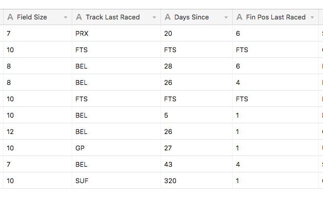 Good field size, most winners came from BEL, most had raced recently (and one 5 days ago!!) and many won last out