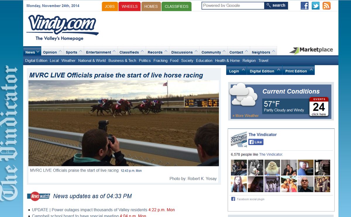 front and center on the homepage of the Vindy...