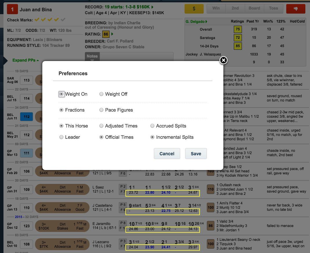 here's an example w/splits that shows prefs. incredible time saving feature